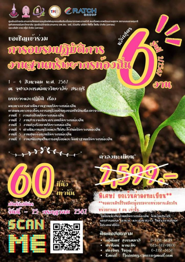 ขอเชิญเข้าร่วม “การฝึกอบรมปฏิบัติการ งานฐานทรัพยากรท้องถิ่น หลักสูตร 6 งานฐานทรัพยากรท้องถิ่น รุ่นที่ 2/2567” 🗓️ ระหว่างวันที่ 1 – 4 สิงหาคม 2567 📌 จุฬาลงกรณ์มหาวิทยาลัย สระบุรี ตำบลชำผักแพว […]