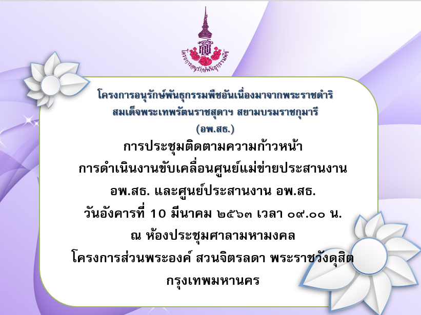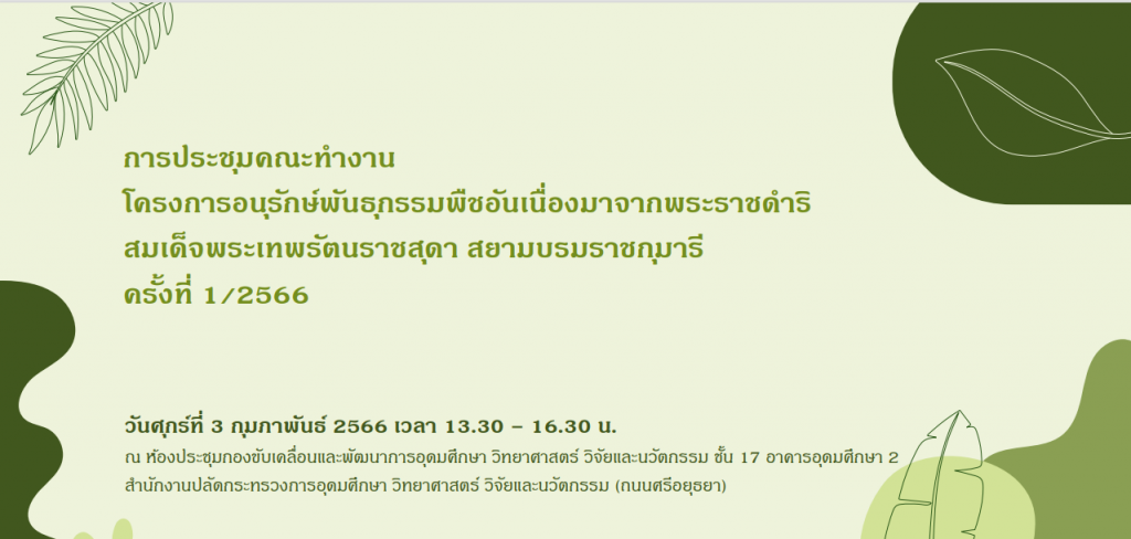 การประชุมคณะทำงานโครงการอนุรักษ์พันธุกรรมพืชอันเนื่องมาจาก พระราชดำริ สมเด็จพระเทพรัตนราชสุดาฯ สยามบรมราชกุมารี ครั้งที่ 2/2566